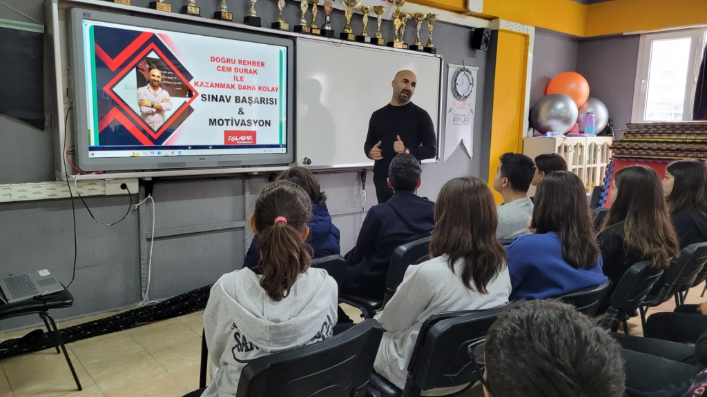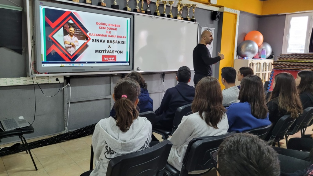 Cem DURAK tarafından okulumuz 8.sınıf öğrencilerine Sınav Başarısı & Motivasyon konulu seminer verildi.